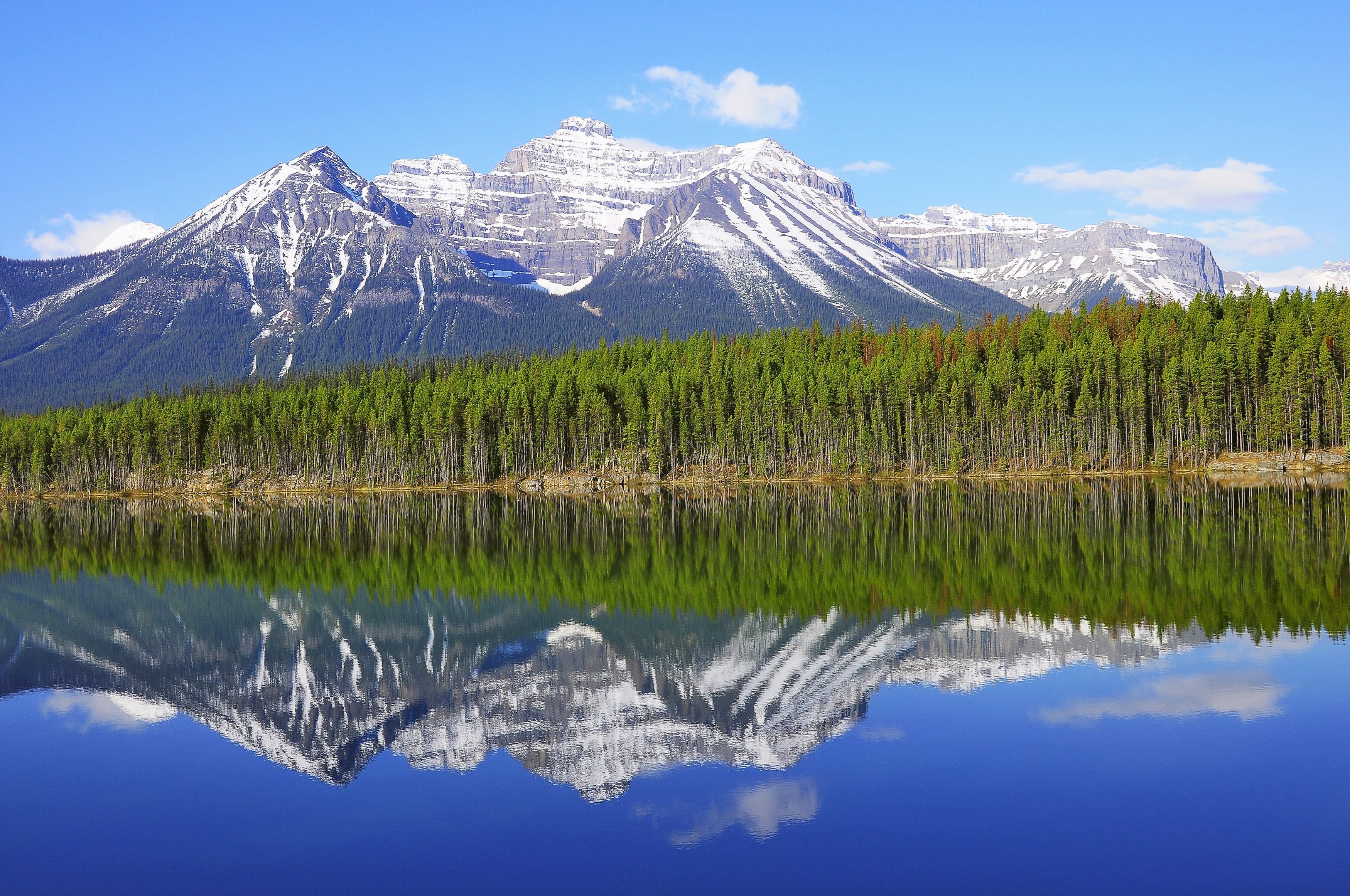 Once you head north out of Lake Louise, the parkway starts flexing immediately. Herbert Lake, just a few miles up the road, is easy to drive past if you’re not paying attention. On a calm morning, this small lake produces mirror-perfect reflections of the surrounding peaks, making it a genuinely magical stop, especially for early risers.