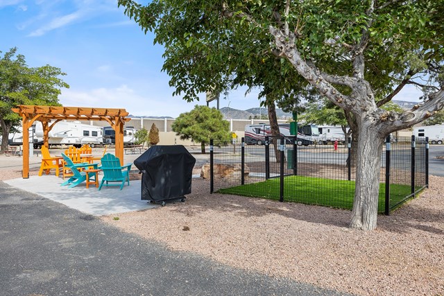 Pull-Thru 50/30 AMPS FHU KOA Patio® & KOA Paw Pen with Pergola