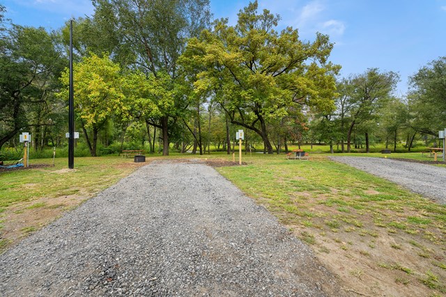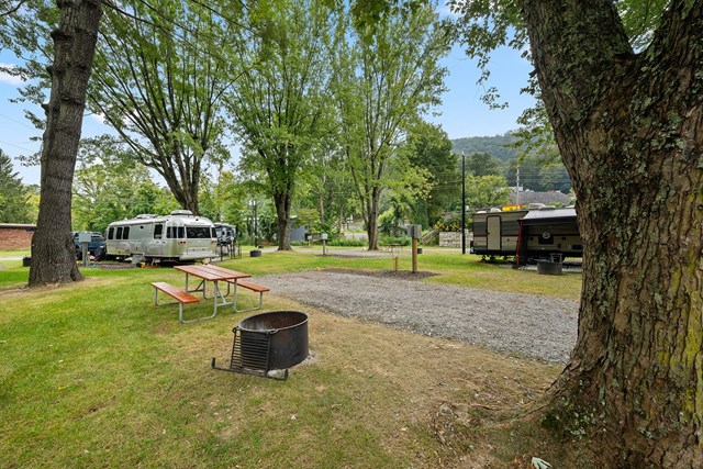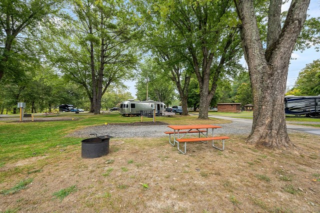 A38 - 40 feet long, back in, full hook up with 50 or 30 AMP. Nice, level, big site.