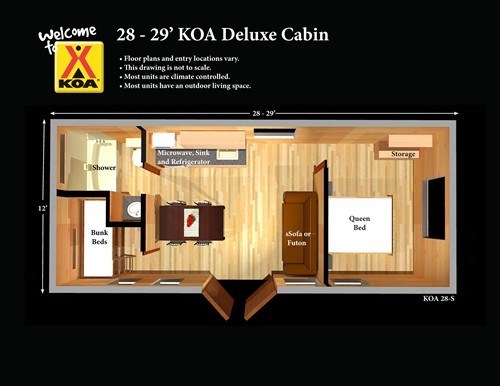 No RV? No Problem! - Our cabins and lodges are perfect for a camping getaway.      Now it's easier than ever to stay at the Cardnial KOA.   Cabins are also great for sharing...consider bringing along...