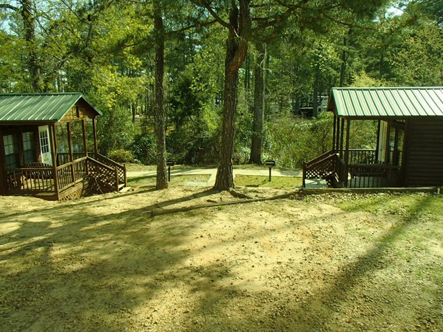 View of Cabins 11-14 and Lodges to the left. - Nice shade at these cabins and Lodges overlooking Lake.