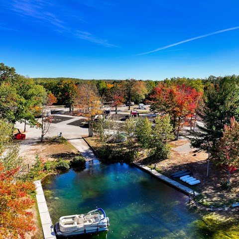 Take Exit 270 from I-75.  Turn left onto Marlette Road toward Waters. At the stop sign, turn left on North Old US-27 South. Drive South for 1.8 miles then turn right onto Headwaters Court. After a quarter-mile, turn right into the campground, just past Precision Motorsports and Marine.