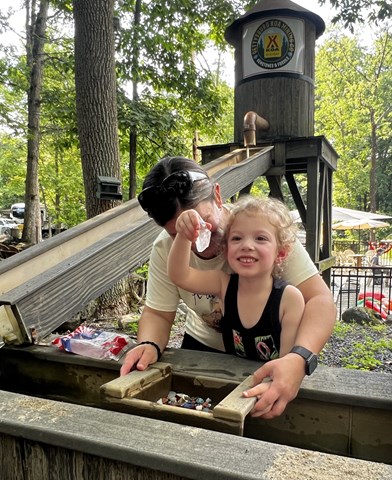Children mining for gems under supervision at Gettysburg KOA sluice