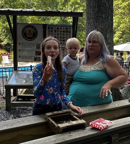Friends showing their gemstone finds at Gettysburg KOA campground