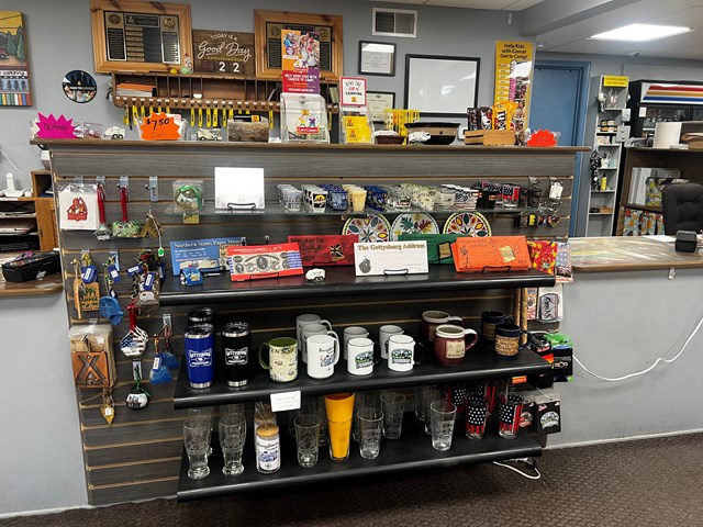 Assorted souvenirs and gifts on display at Gettysburg KOA campstore