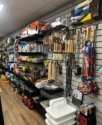 Camping gear and essentials wall display at Gettysburg KOA campstore