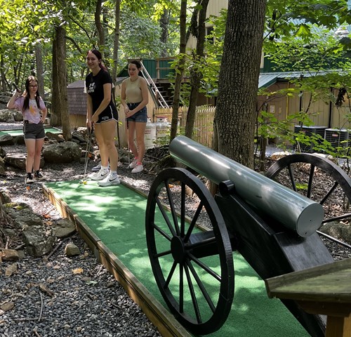 Fun photo cutout of kids playing mini-golf at Gettysburg KOA