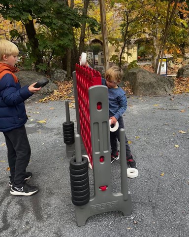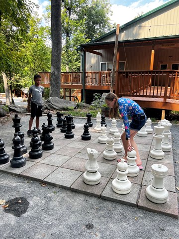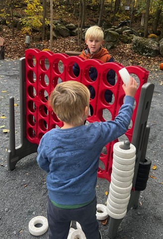 Kids playing giant Connect Four at Gettysburg KOA, enjoying outdoor camping games and activities.