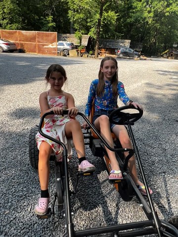Camper enjoying a fun ride on a pedal cart at the Gettysburg KOA.