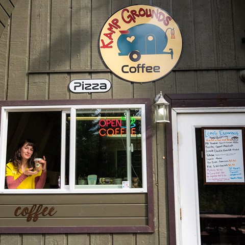 Kamp Grounds Coffee (& Pizza) Shop - Kamp Grounds Coffee - Our Coffee Shop serves locally sourced organic espresso beans with all of your favorite flavors.  Of course you can get it hot or iced.Pizza...